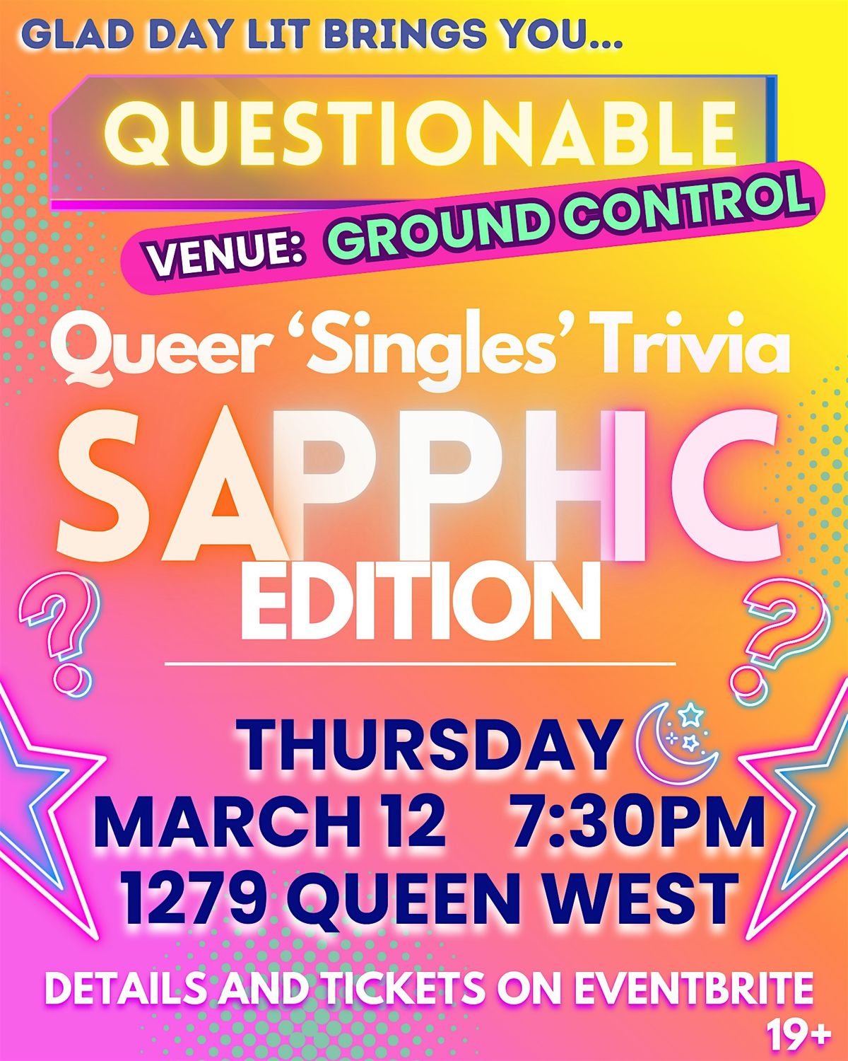 Join us at GROUND CONTROL for the event that has become a legend. Always trans and enby inclusive.About this Event