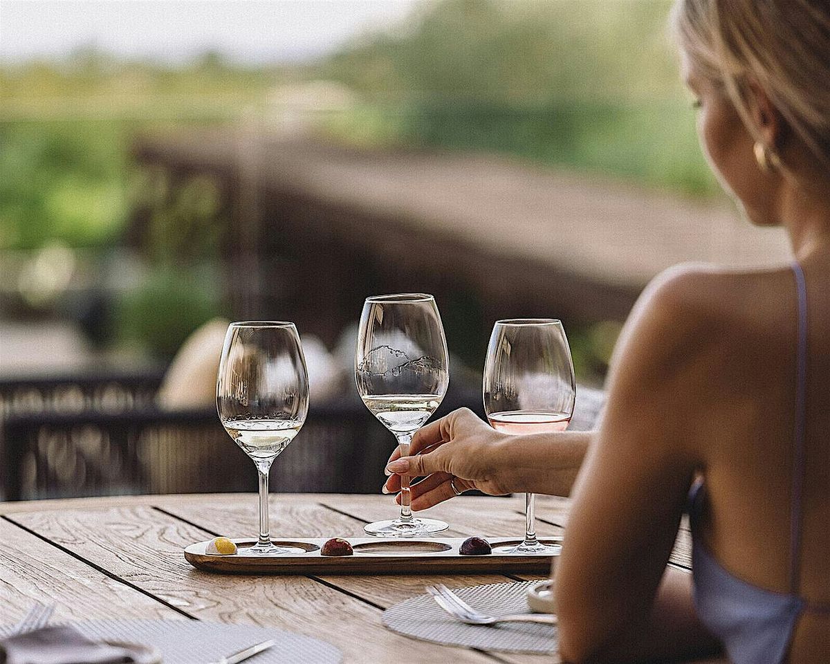 To complete the evening, enjoy a delicate dessert of hibiscus‑peach compote, opalys panna cotta, and an almond–cocoa nib tuile—an elegant finale to a thoughtfully designed tasting journey.