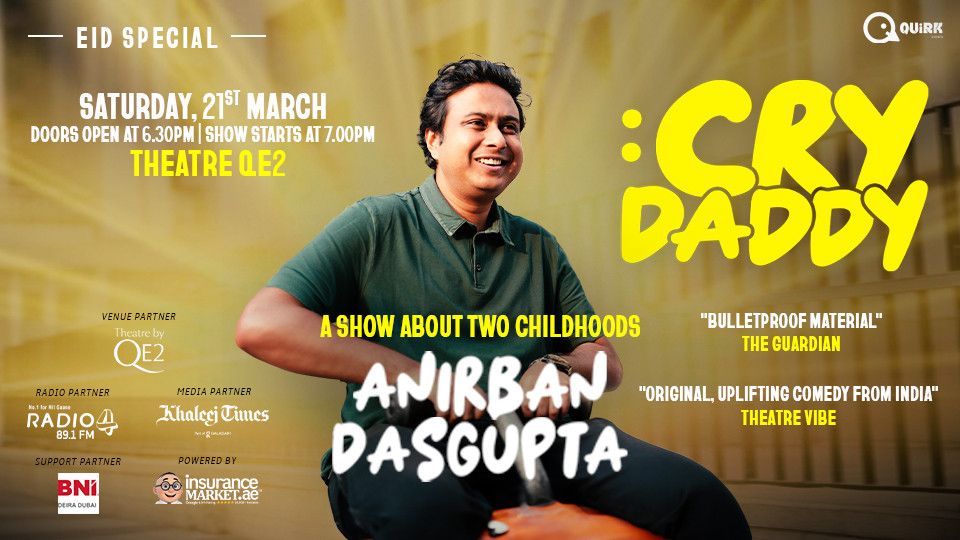 Anirban Dasgupta Live in Dubai This Eid Break with His Special, Cry DaddyAnirban Dasgupta returns to Dubai this Eid break with his third stand-up special, Cry Daddy — a smart, immersive comedy show, fresh from its debut at the Melbourne International Comedy Festival, Cry Daddy explores two childhoods… with a twist.