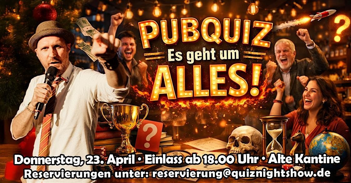 Freut euch auf einen entspannten Quiz-Abend in lockerer Atmosphäre in der Alten Kantine. Hier könnt ihr nicht nur euer Wissen testen, sondern auch nette Menschen kennenlernen. Mit Fragen aus verschiedensten Bereichen wird für jede Menge Abwechslung und Unterhaltung gesorgt. Und für die Teams, die sich besonders hervortun, warten erfrischende Shots als Belohnung!