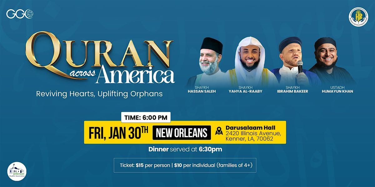 Join us for a special nationwide Qur’an Tour with Shaykh Yahya Raaby, Shaykh Hassan Saleh, Shaykh Ibrahim Bakeer, and Ustadh Humayun Khan, for an uplifting evening of Qur’anic recitation, heartfelt reminders, and community connection.