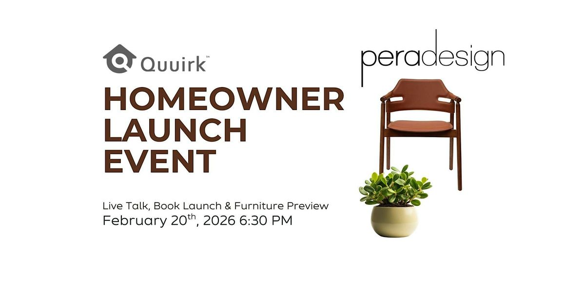 Join us for an intimate evening with Quuirk × PeraDesign evening bringing together homeowners, real estate professionals, and book lovers for a thoughtfully curated experience centered on design, homeownership, and long-term value.