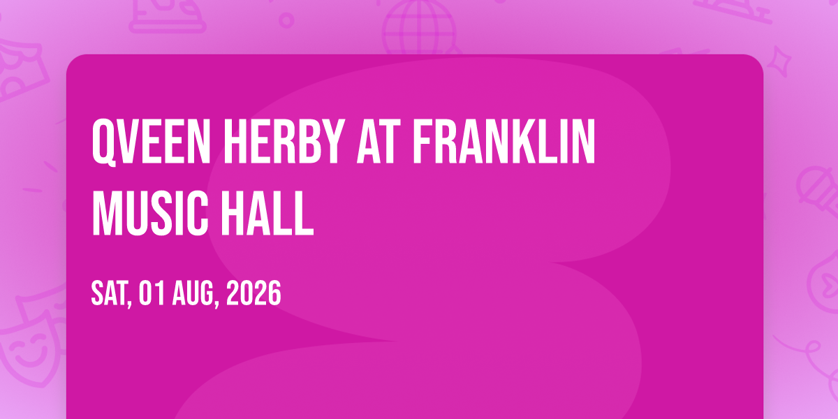 🎉 Welcome to Qveen Herby at Franklin Music Hall, where the impossible becomes possible and dreams take flight! 🏛️ Join us at Franklin Music Hall in the heart of Philadelphia, PA for an event that will redefine your expectations. 📅 On August 1st, 2026 at 09:00 PM, witness the transformation of space and time into something truly magical. ✨ It's a curated experience combining the best of innovation, entertainment, and community spirit, creating moments that will be remembered for years to come. Whether you're a first-time visitor or a seasoned enthusiast, prepare to be amazed. 🎊 Book now to ensure your place in this unforgettable experience!