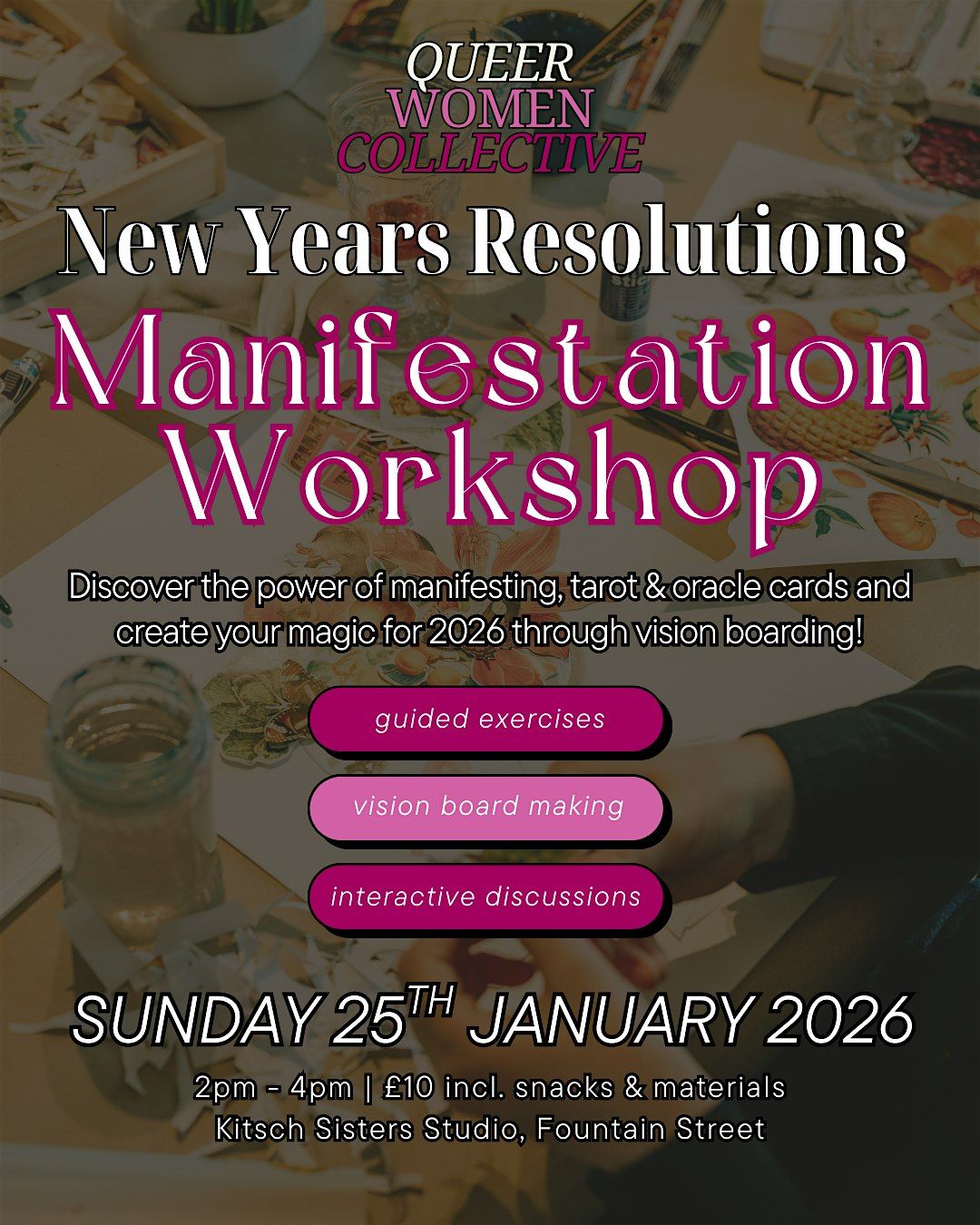 Following a series of successful sold out workshops last year, QWC are back in the new Kitsch Studio penthouse with 2026's New Years Resolutions Manifestation & Vision Boarding workshops!
