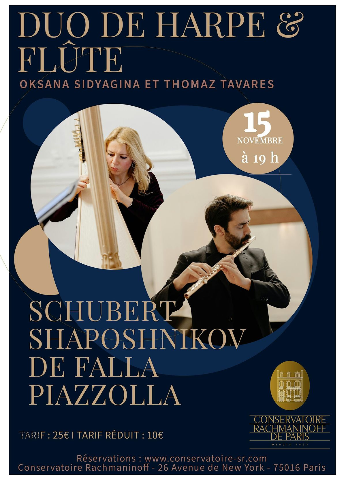 Oksana SIDYAGINA, harpe, Thomaz TAVARES, ) interprètent les transcriptions pour harpe et flûte de grandes œuvres du répertoireAbout this Event