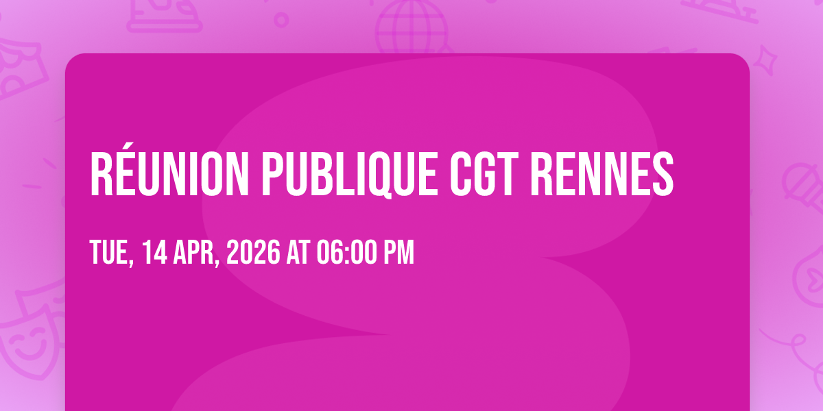 L’Union Locale de la CGT de Rennes organise mardi 14 avril une réunion publique !Au programme : présentation du syndicalisme CGT, de l’Union Locale de Rennes, discussions autour des luttes du quartier (Centre Alma, services publics) et témoignages de syndiqué•es.