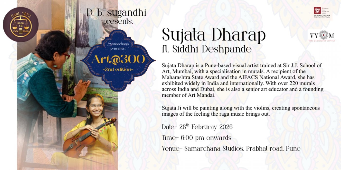 For this event, Sujata Dharap will create live, spontaneous paintings in dialogue with violin music. Responding intuitively to the mood and essence of the melodies, she will paint abstract visual interpretations inspired by the music. Two distinct artworks will emerge in real time, each reflecting the emotional landscape of two different ragas, offering the audience a rare experience of seeing music transform into visual form