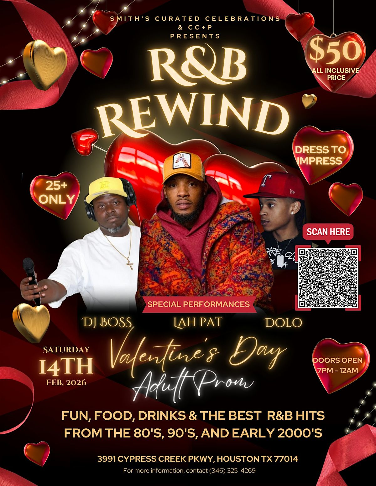 Join us for the ulimate Valentine's Day experience in Houston. We're taking it back to the golden era of R&B with live performance by Lah Pat. Whether you're coming with your "Flyest Couple" or rolling with the "Baddest Singles," this is the vibe you've been looking for. Your $85 All-Inclusive Ticket Features:👩🏽❤️💋👨🏾🕴🏾