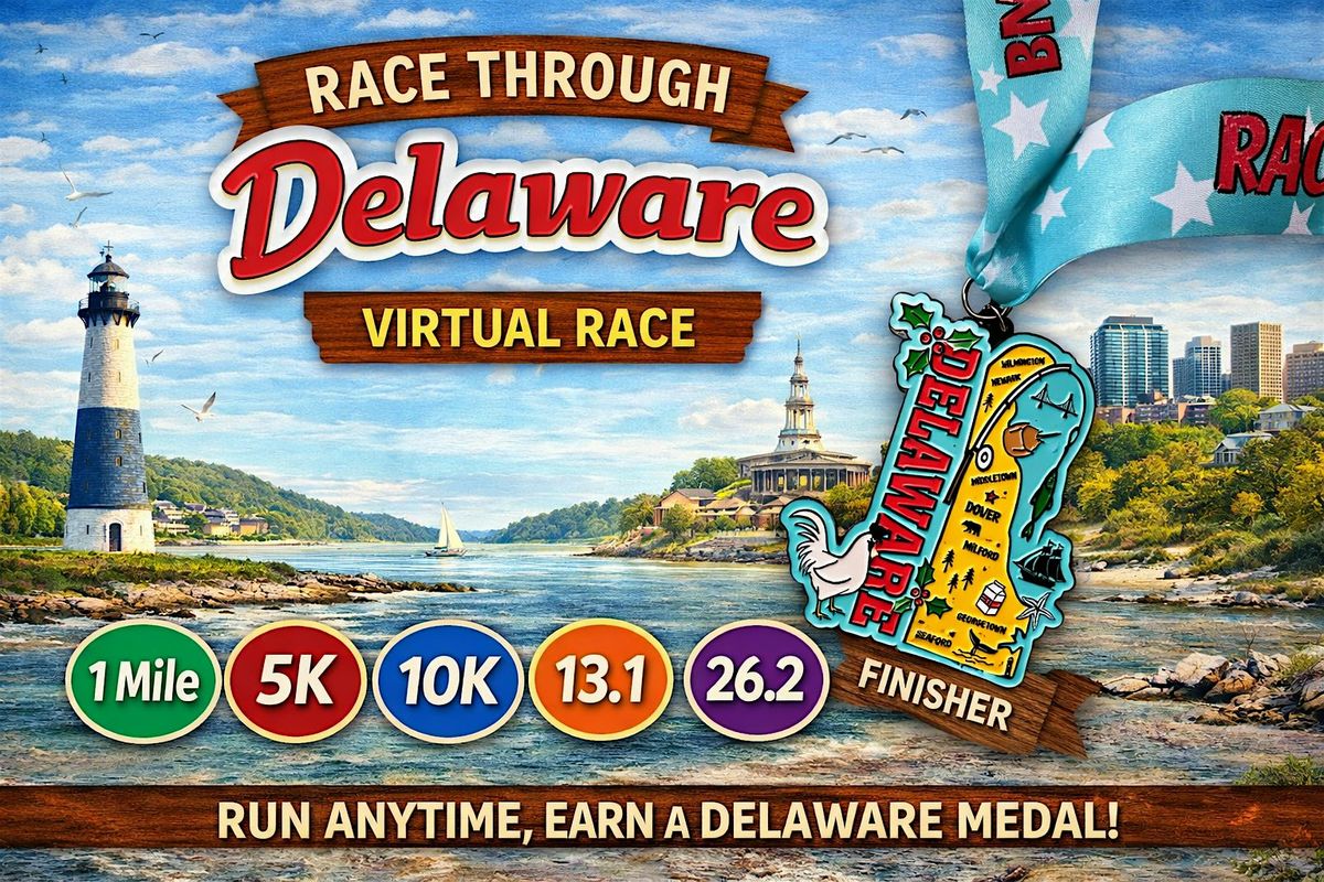 Experience the charm of the First State with the Race Through Delaware Virtual Race! From coastal views to historic towns, this race celebrates everything that makes Delaware special—no matter where you run.