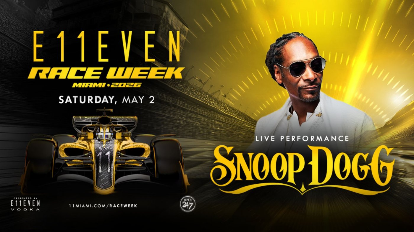 Race Week Miami at E11EVEN Saturday, May 2 ft Snoop Dogg. Presented by E11EVEN Vodka.