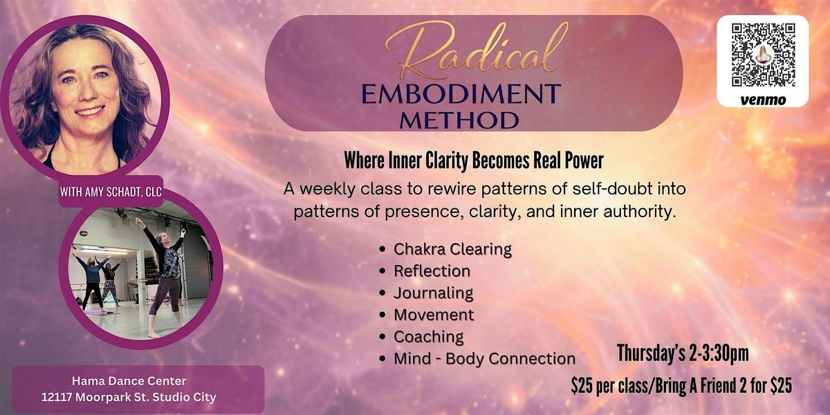 Radical Embodiment is a weekly guided experience designed to help women release emotional pressure, reconnect with their truth, and move forward with grounded confidence.