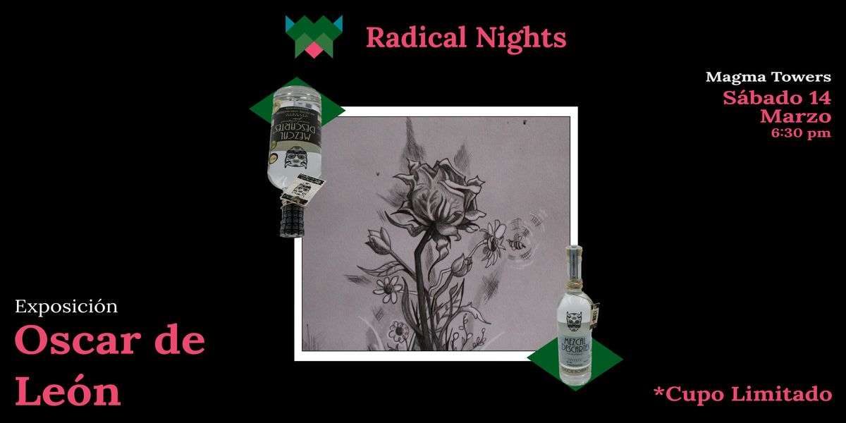 Radical Nights presenta la exposición del artista Óscar de León acompañada por Mezcal Descartes en una noche de arte y conversación.