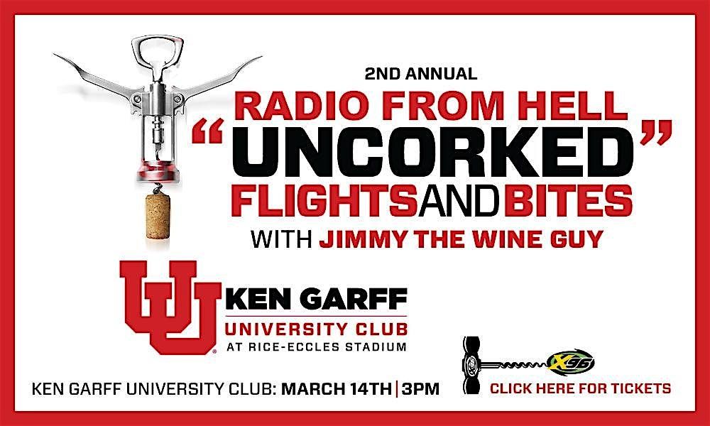 Join Radio From Hell with Jimmy The Wine Guy at the Ken Garff University Club at Rice-Eccles Stadium March 14th at 3pm for an afternoon of hand-selected wine, perfectly paired food , and an elevated dining experience in a stunning setting. Plus good company (as long as you think Kerry, Bill, and Gina are good company)!