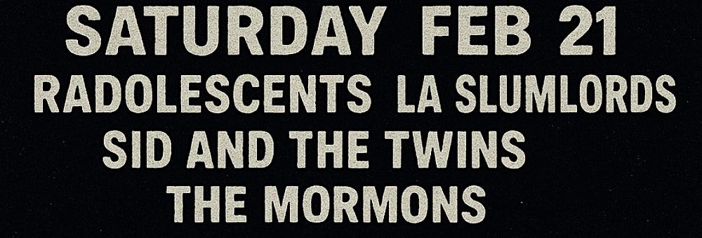RADolescents playing all your favorite Adolescents songs with LA Slumlords, Sid and the Twins and The Mormons at Corbin Bowl