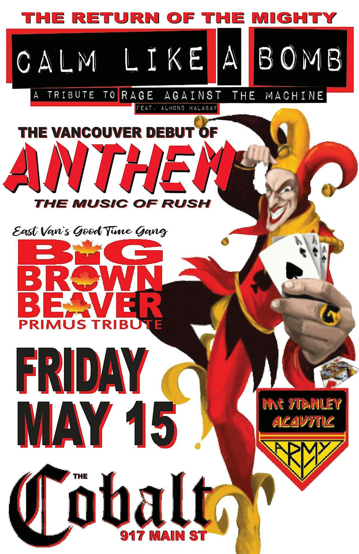 A full night of tribute classics featuring Rage Against the Machine, Rush, Primus, and KISS inspired live sets at The Cobalt.About this Event