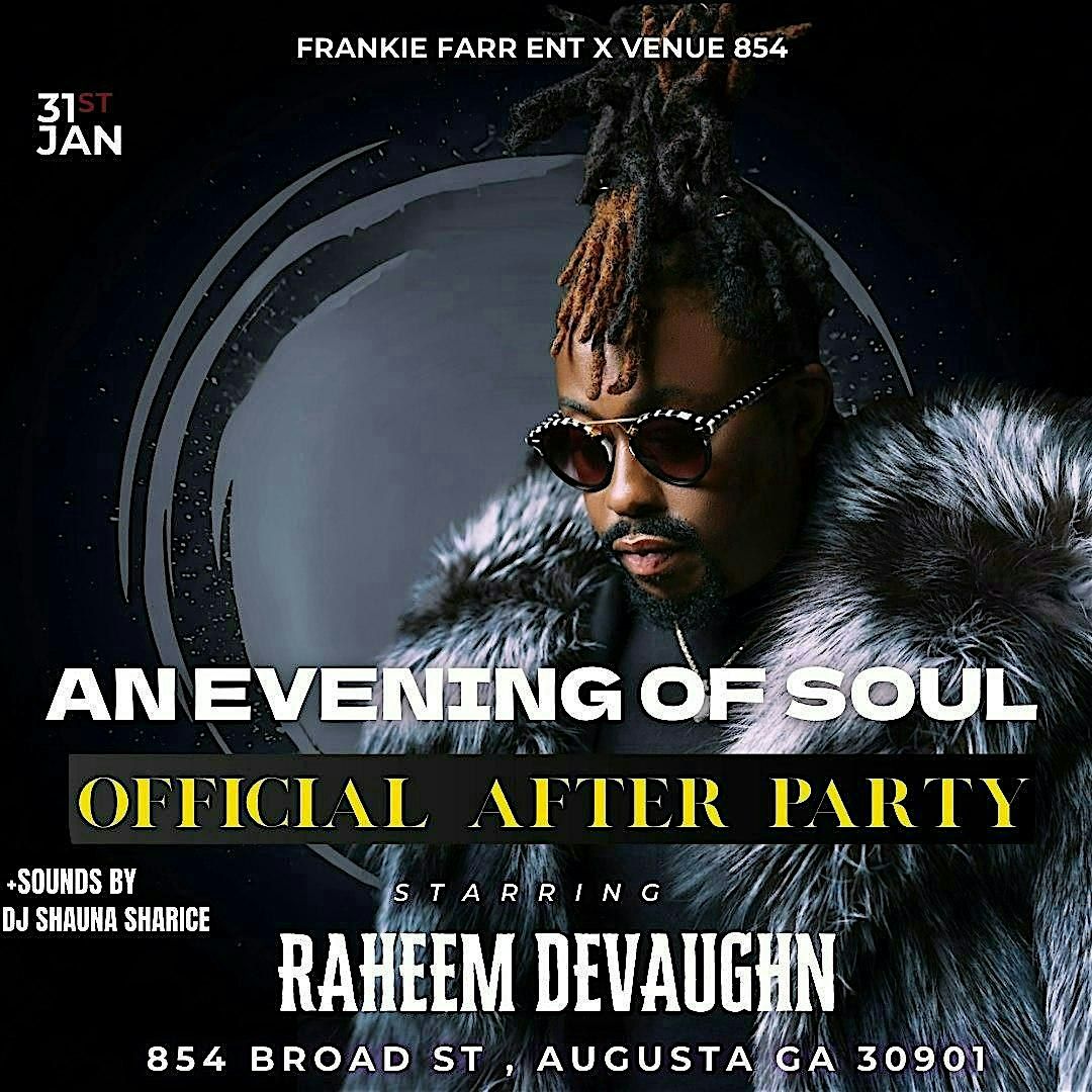 Get ready to keep the vibes flowing at the Raheem Devaughn After Party! Join us in person for a night full of smooth tunes, great company, and unforgettable moments. Whether you danced all night or just want to chill and vibe, this after party is the perfect spot to unwind and connect with fellow fans. Don't miss out on the fun – let’s make memories after the show!