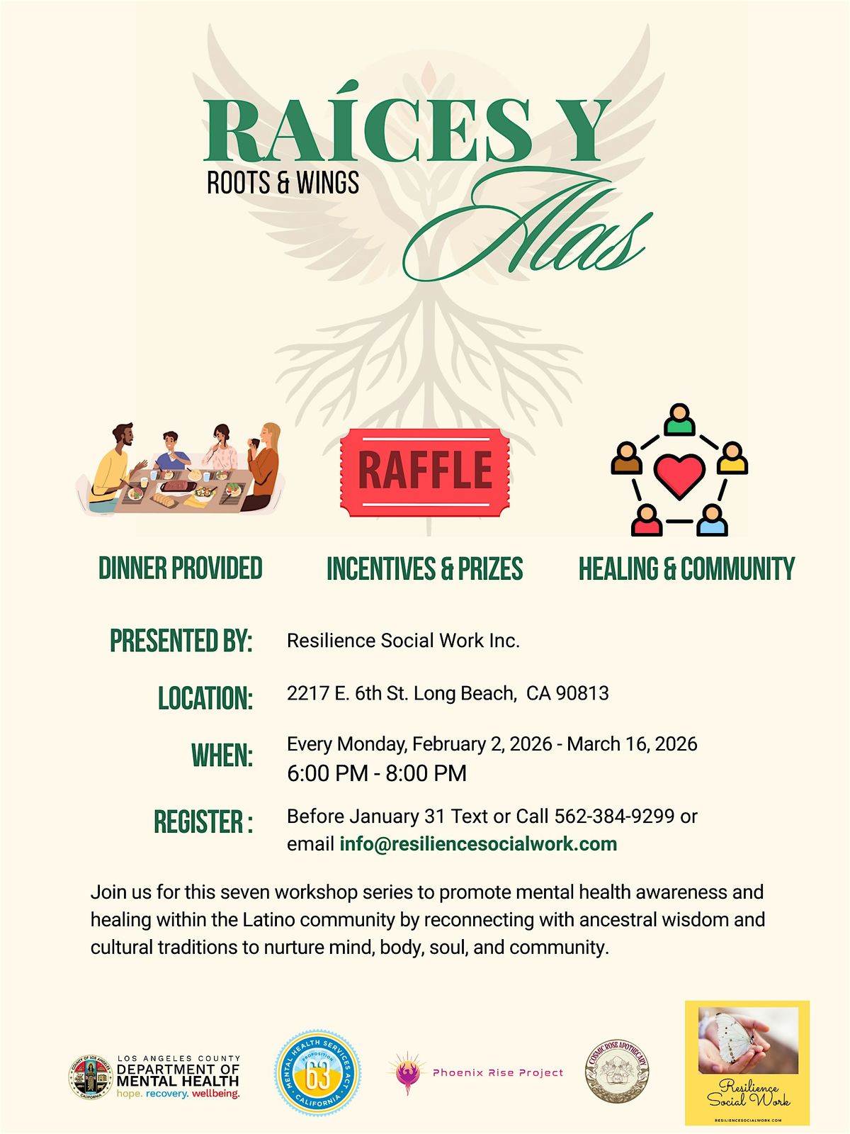 FREE 7 series workshop tailored to the Latino community to strengthen our roots, and expand our wings towards healing & resilience.