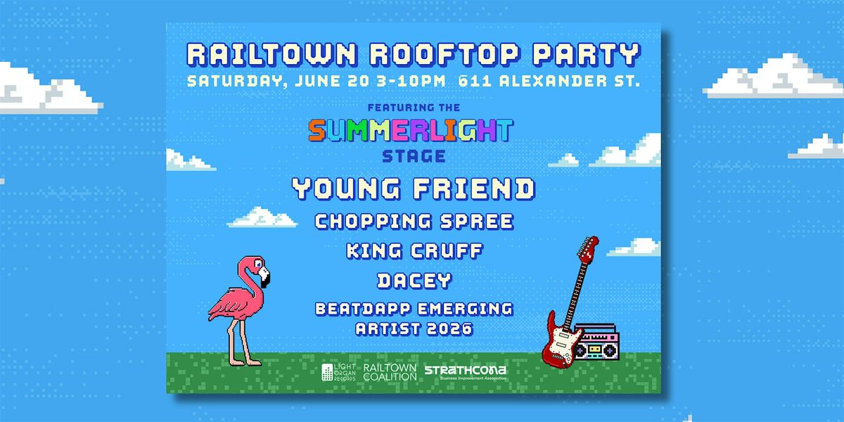 Hosted by Light Organ Records, Strathcona Business Improvement Association, and the Railtown Coalition, this open-air, multi-level rooftop celebration brings together music lovers, families, creatives, foodies, and neighbours for one of the city’s most unique summer events.