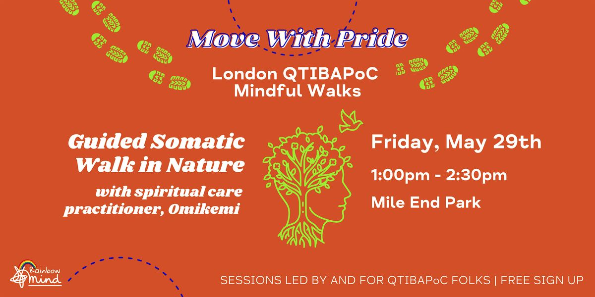 Spend some time in nature and queer PoC community on a guided somatic walk in nature with Rainbow Mind and special guest, spiritual care practitioner Omikemi (they/them). Read on to learn more...
