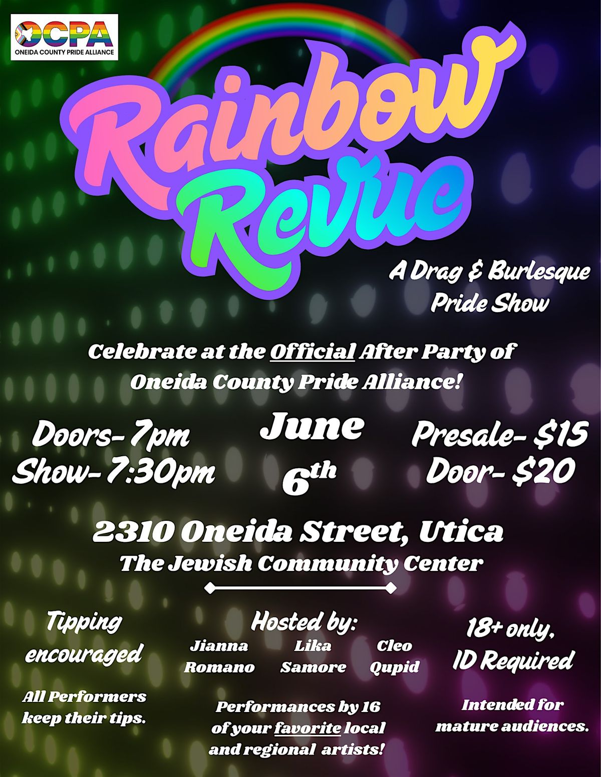 Celebrate at the Official After Party of Oneida County Pride Alliance! Performances by your local & regional drag and burlesque performers.