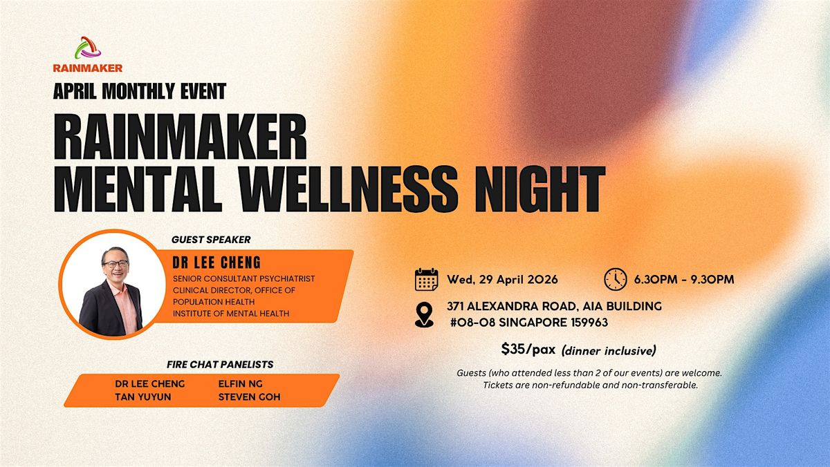Join us for a meaningful evening focused on mental wellness, featuring guest speaker Dr Lee Cheng, Senior Consultant Psychiatrist from IMH, followed by a Fire Chat with our panelists β Dr Lee Cheng, Tan Yuyun, Elfin Ng and Steven Goh.