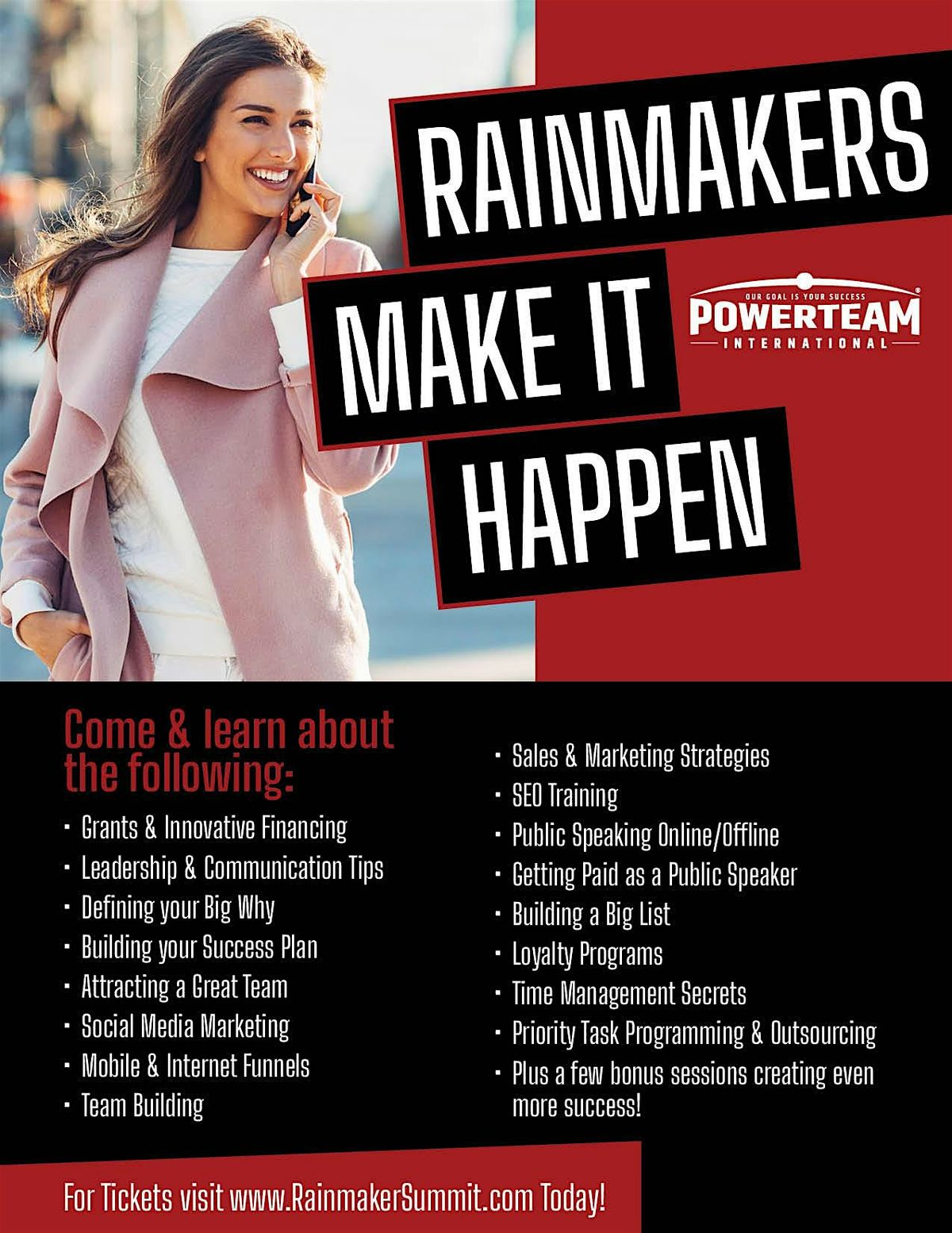 The Rainmaker Summit is the Ultimate Breakthrough Experience for entrepreneurs and small business owners! When you attend this Multi-Day event you will be trained on how to launch, grow and build an even more successful business.