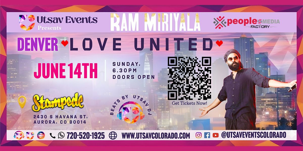 Get ready to immerse yourself in a truly memorable night of music and entertainment as Utsav Events proudly presents Ram Miriyala Live in Denver! Happening on the 14th of June, 2026, this spectacular event is certain to be the highlight of your year. Experience the magic of Telugu music, live in concert, as Ram Miriyala serenades the crowd with his soulful voice. The night promises to be a vibrant mix of singing, music, food, and drinks. Grab your tickets now and be a part of this amazing night party!