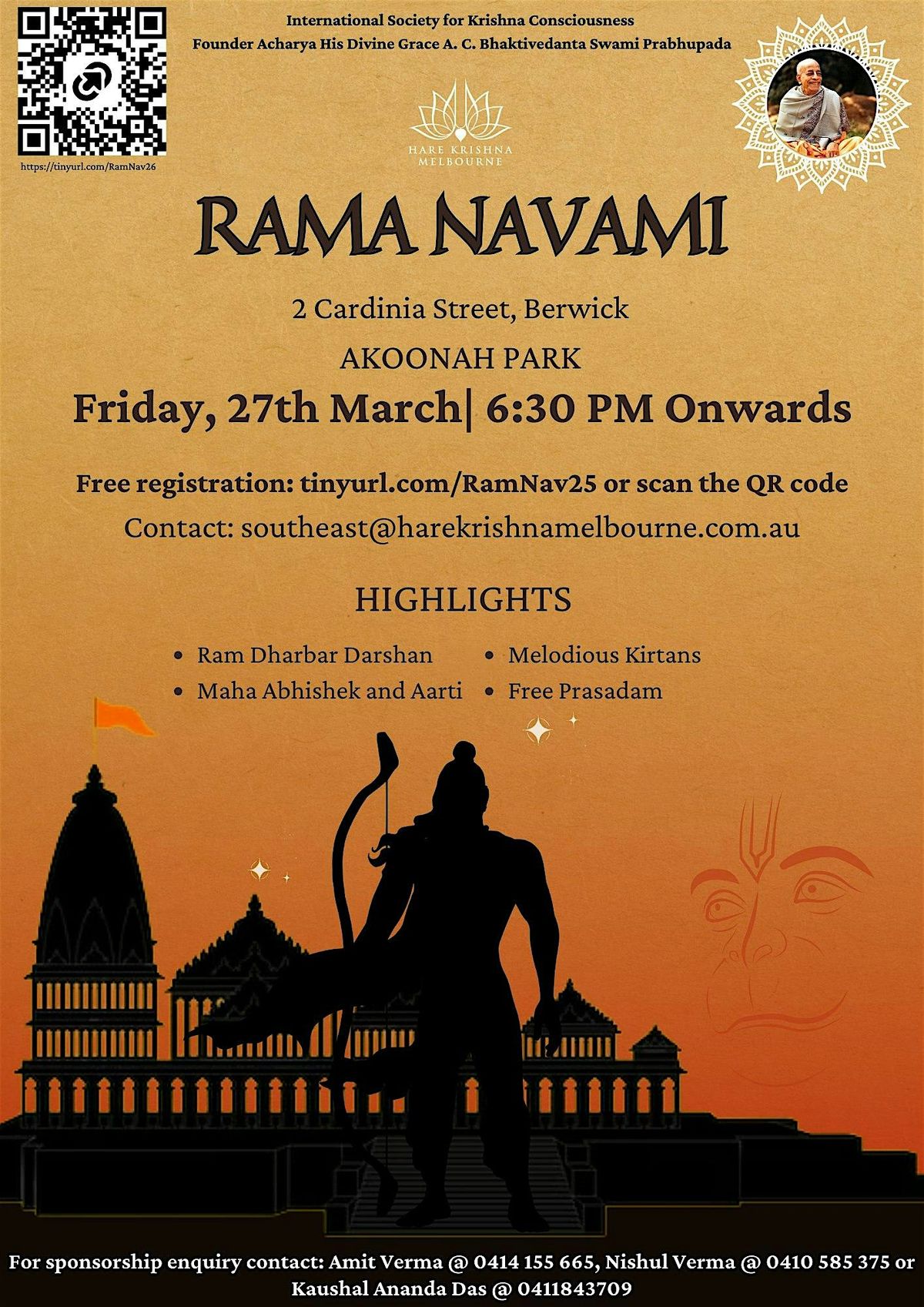Join us at Rama Navami on March 27th!Experience the divine darshan of Rama Dharbar, Soulful Kirtan, Free Prashadam, Arthi, Abishekam & more
