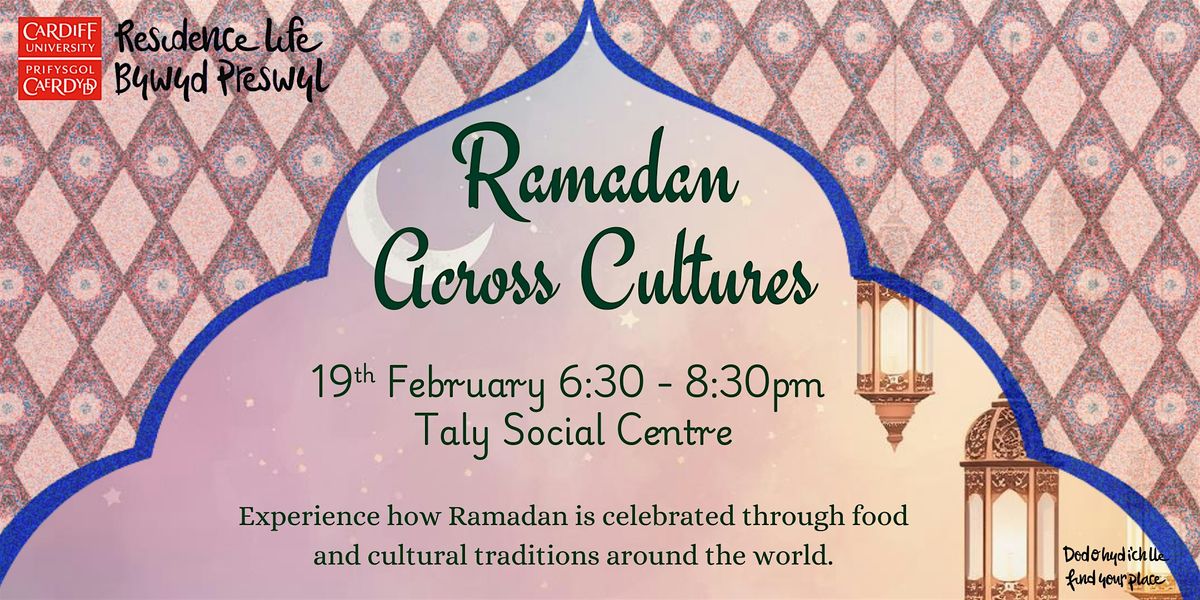 Ymunwch â ni ar gyfer Ramadan ar draws Diwylliannau: cymdeithas rhydd ac ymlaciol sy'n dathlu Ramadan trwy fwyd a chreadigrwydd. Mwynhewch byrbrydau a diodydd bach wedi'u hysbrydoli gan draddodiadau Ramadan ledled y byd, a chymerwch ran mewn gorsaf grefft dawel i greu cerdynnau cyfarch a chyfrinachau i fynd adref gyda chi.