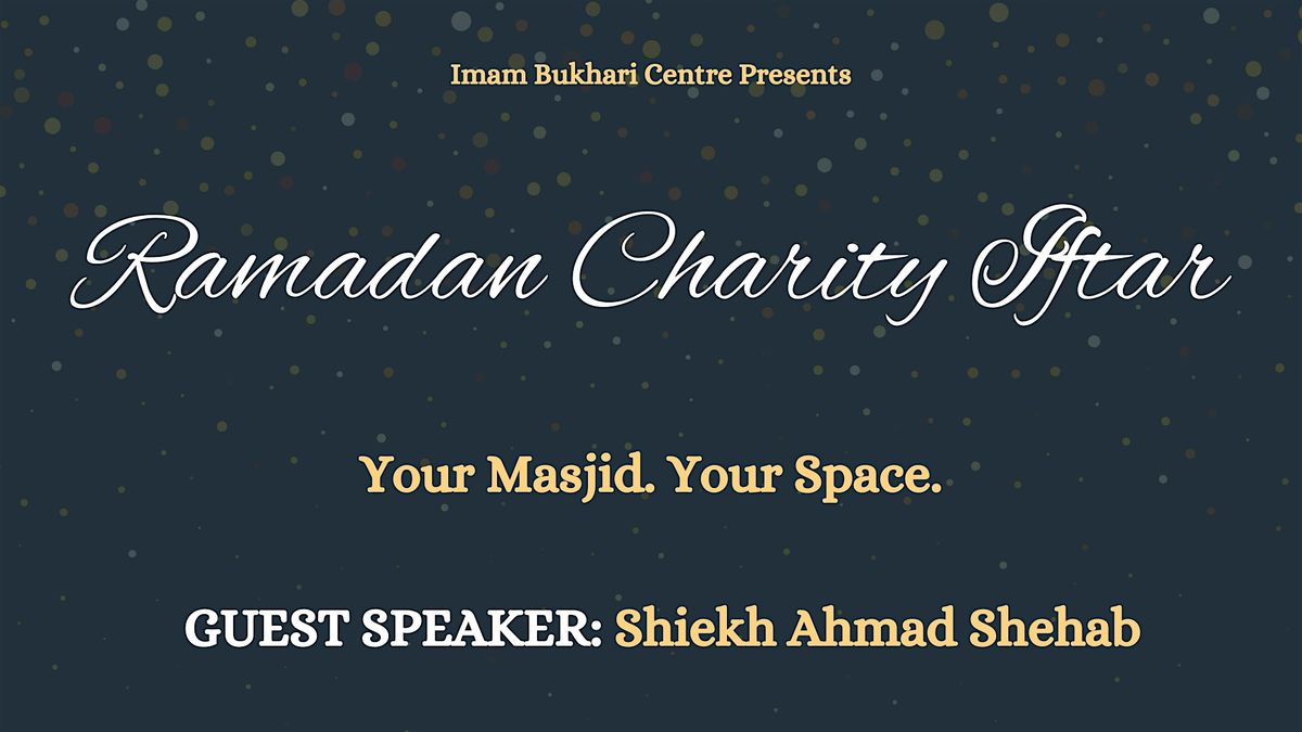 We are honoured to welcome you to “Ramadan Charity Iftar” with Shaykh Ahmed Shehab on Friday, February 20th, 2026 at the Maple Banquet Hall between 4:30- 8 pm.