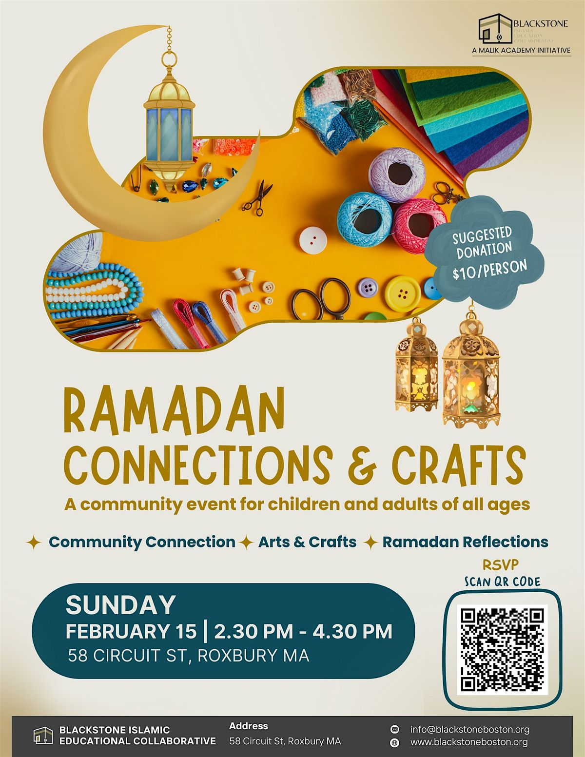 We invite children and adults of all ages to join us for an afternoon of community connection, arts and crafts, fun activities, Ramadan reflections, and intention setting as we prepare our hearts for Ramadan.