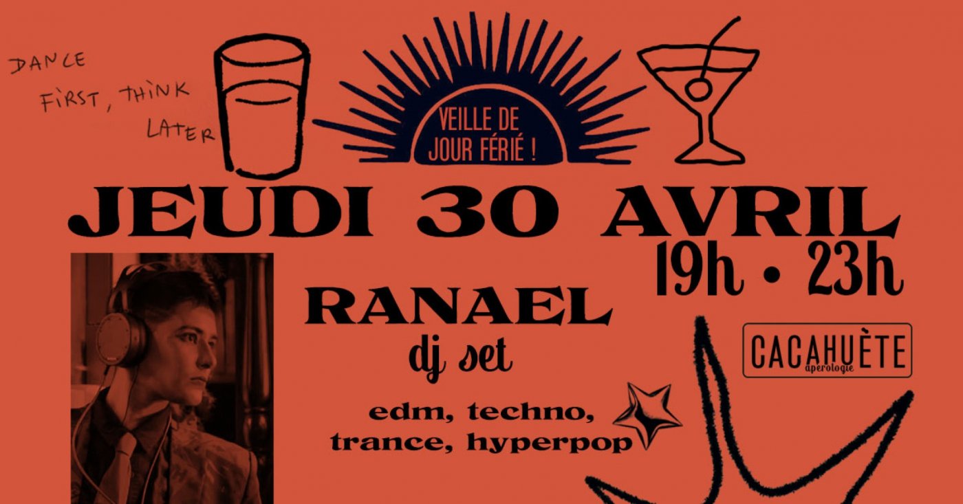 RDV JEUDI 30 AVRIL dès 19h pour s'ambiancer aux côtés de RANAEL et sa sélection edm, techno, trance, hyperpop.