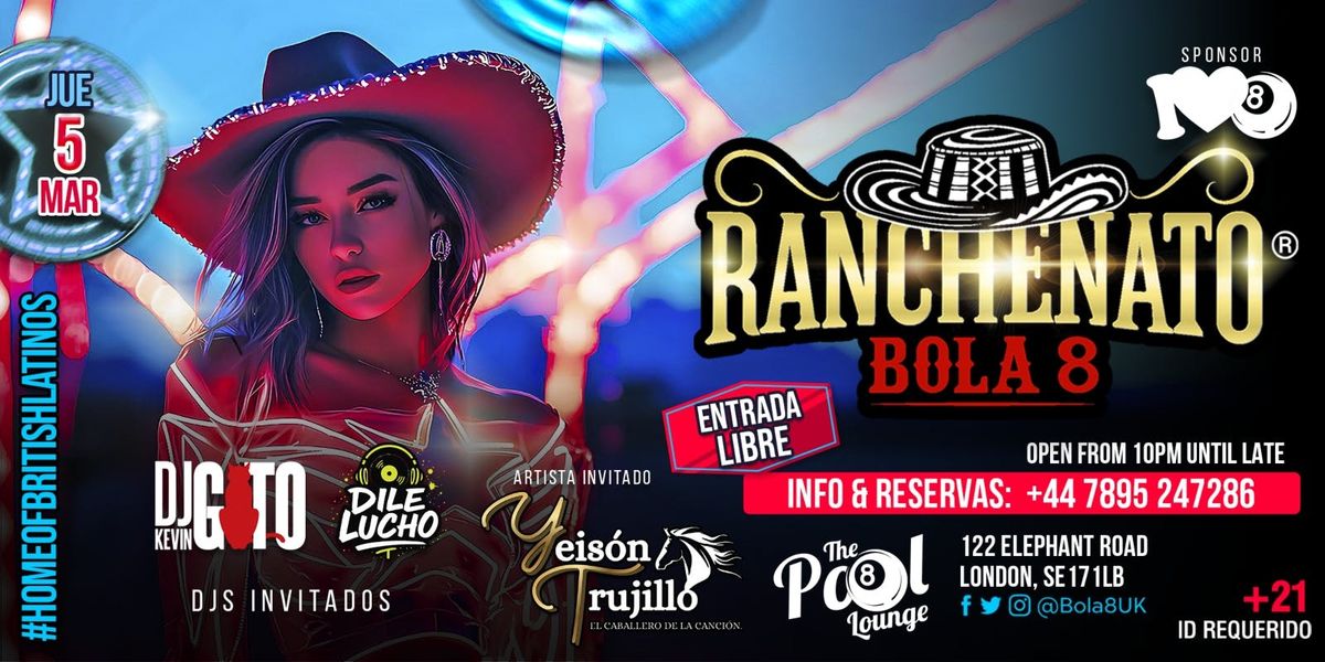 On Tuesday 5th March, Ranchenato takes over Bola 8 in Elephant & Castle with a powerful mix of Ballenato and Ranchera — the kind of music you don’t just dance to… you sing, you dedicate, and you raise your glass to.