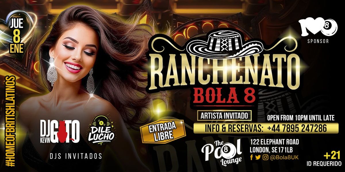 Este jueves 8 de enero, Londres se canta, se baila y se bebe al ritmo del Ranchenato 🤠🔥Si te gusta la música que se siente en el pecho y se canta con el alma, Bola 8 es tu lugar.