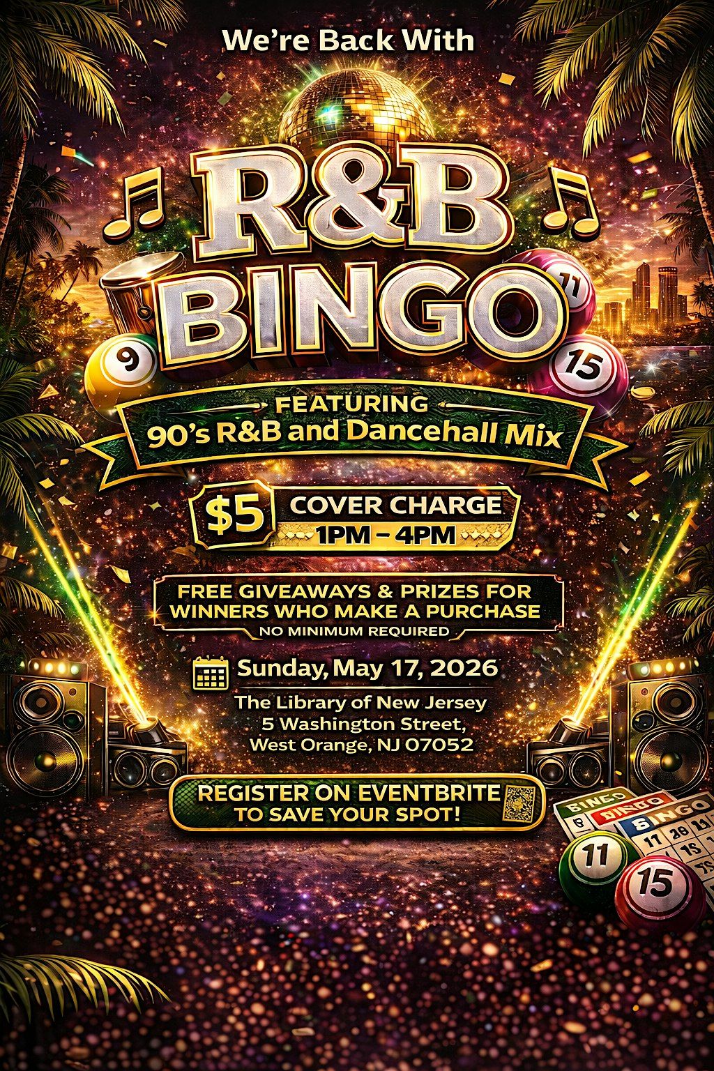 Join us in person for an epic afternoon of R&B and Dancehall grooves and classic bingo thrills! Bring your friends, vibe to the smoothest tunes, and shout bingo! as you win cool prizes. It’s all about good music, fun games, and great company. Don’t miss out on the coolest R&B Bingo experience around! $5 Cover charge.
