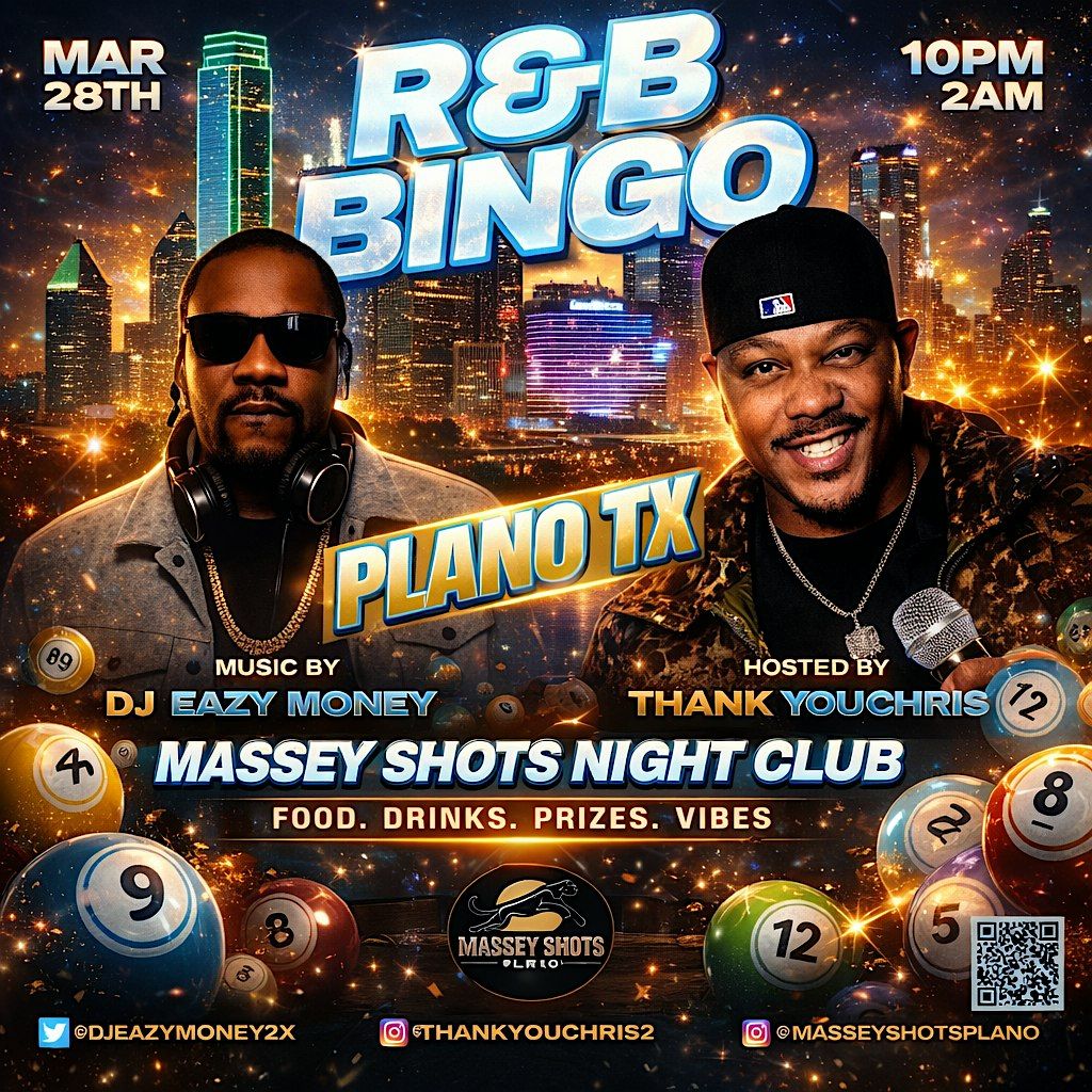 Welcome to TRAP Vs. R&B BiNGO Plano TEXAS! Get ready for a LIT ASS NIGHT at MASSEY SHOTS on March 28TH, 2025 at 10:00 PM.