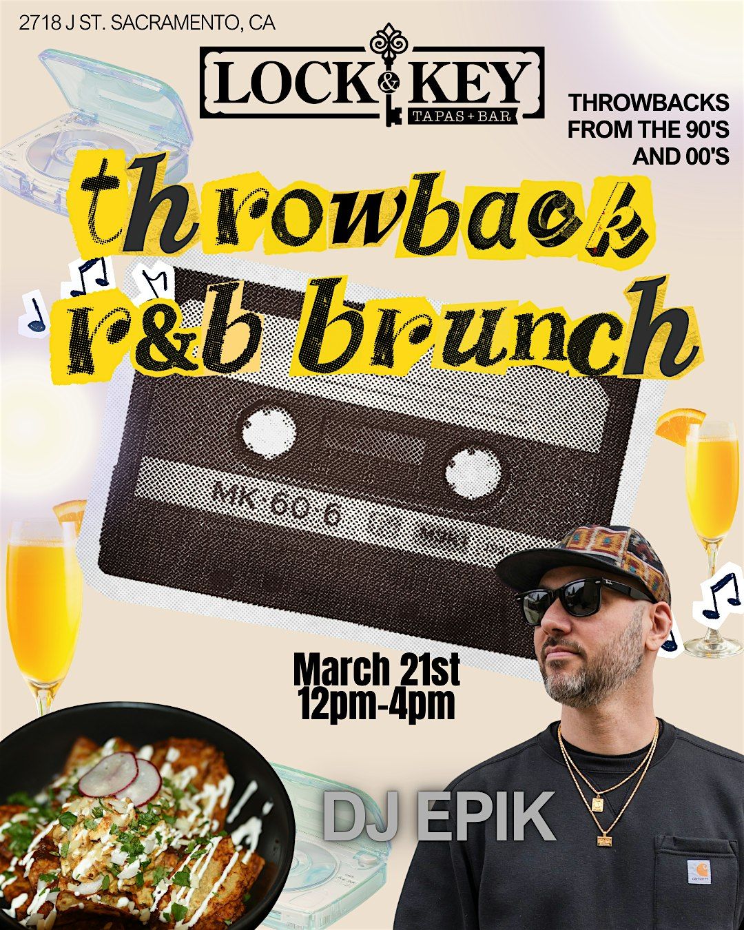 The throwback R&B Brunch at Lock & Key is a daytime party featuring classic 90s and 2000s R&B and hip-hop hits, plus food, and drinks!