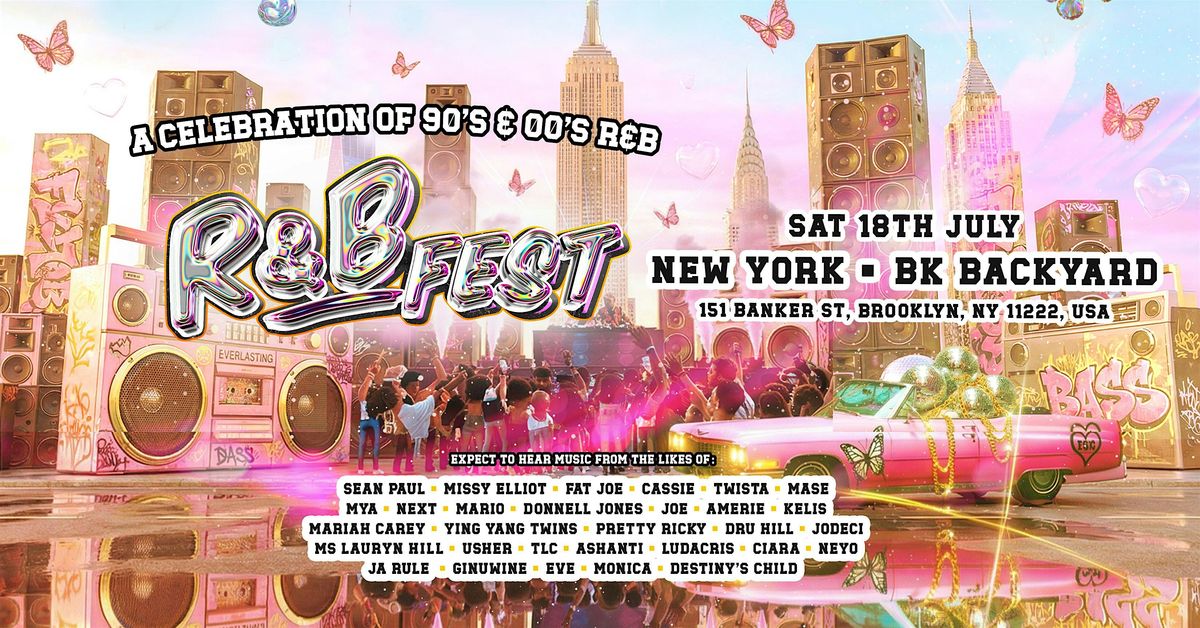 Expect to hear: All your favourite 90’s and 00’s R&B Anthems - SEAN PAUL • MISSY ELLIOT • FAT JOE • CASSIE • TWISTA • MASE • MYA • NEXT • MARIO • DONNELL JONES • JOE • AMERIE • KELIS • MARIAH CAREY • YING YANG TWINS • PRETTY RICKY • DRU HILL • JODECI • MS LAURYN HILL • USHER • TLC • ASHANTI • LUDACRIS • CIARA • NEYO • JA RULE • GINU WINE • EVE • MONICA • DESTINY'S CHILD and many more!