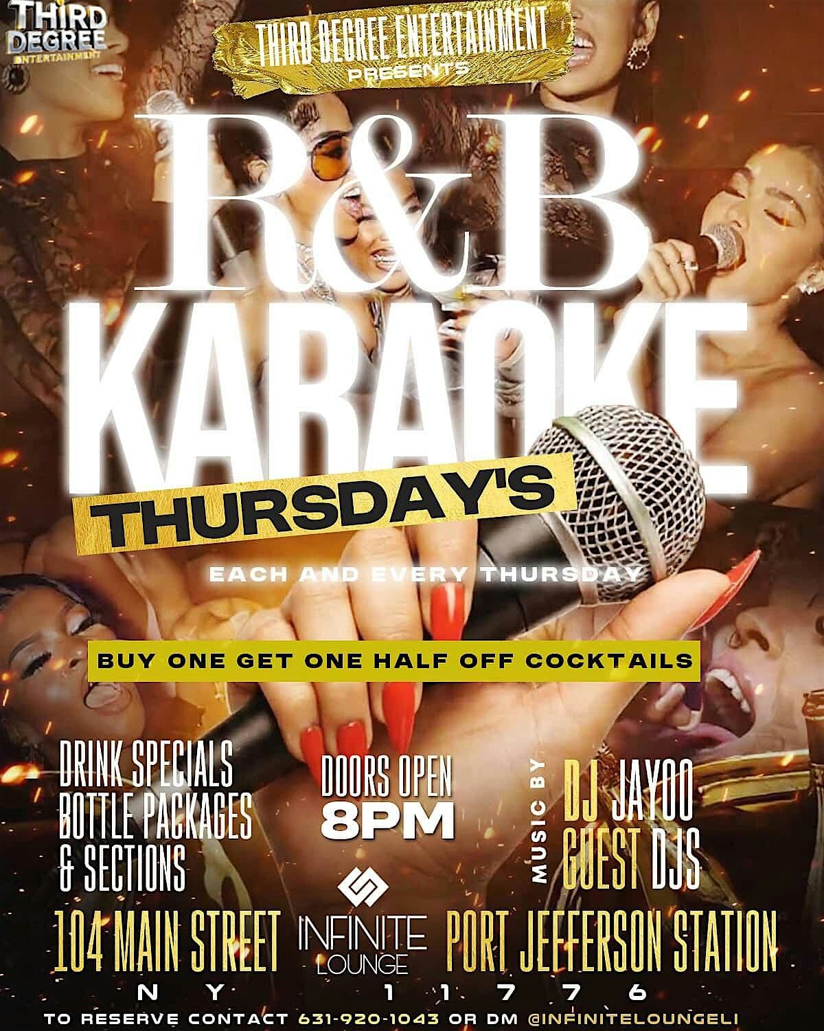 Live Singing with lyrics on tv screens, Nice & Comfy atmosphere, friendly environment, Drinks specials, free entry, strict dress code.