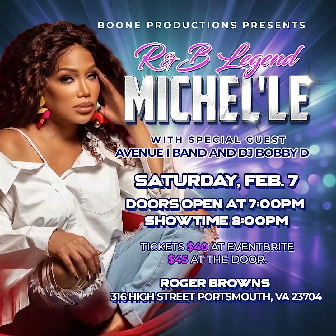 Join us for an exciting night with R&B Legend Michel'le with special guest The Avenue I Band and DJ Bobby D.