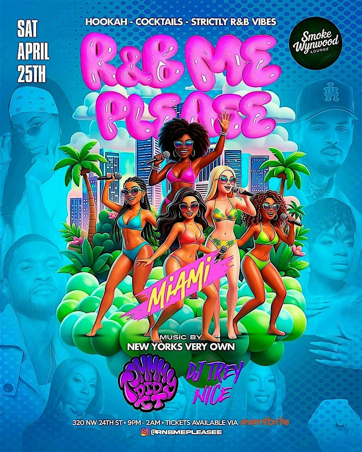 Join us in person for an unforgettable night filled with smooth R&B vibes, good energy, and Miami heat. Whether you're here to dance, chill, or just soak up the atmosphere, this event’s got you covered. Don’t miss out on the ultimate R&B experience right in the heart of the city. Bring your crew and let’s make some memories!