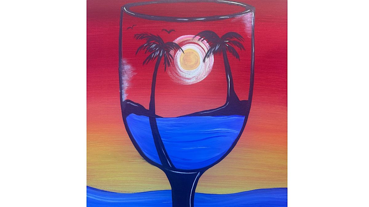 Get ready for a Paint & Sip filled with smooth vibes and soulful fun! Paint a wine glass glowing with a tropical sunset, palm trees, and sun—sip, relax, and enjoy island vibes, while a live DJ Juan G spins your favorite R&B hits. Sip, groove, and let the music inspire your creativity for a night of art and nostalgia.