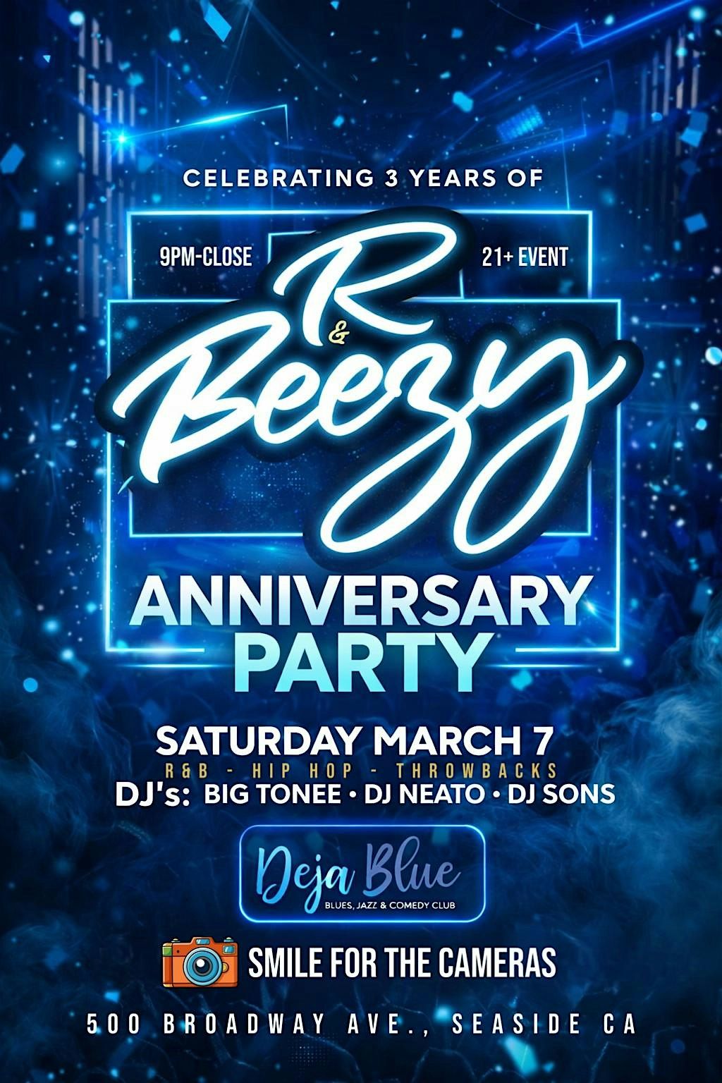Join us at Deja Blue for a night dedicated to the music, the memories, and the movement that’s made R & Beezy a Monterey Bay favorite.