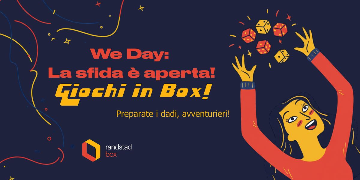 Siete ufficialmente convocati in Randstad Box per il primo, epico WeDay: Il raduno dei dadi! Preparatevi a una serata di pura strategia, risate fragorose e nuove, improbabili alleanze.