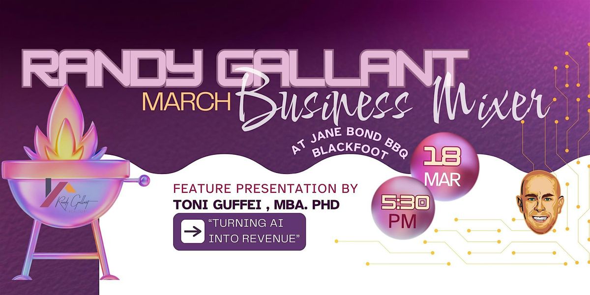 You are invited to the RANDY GALLANT MARCH BUSINESS MIXER coming up on Wednesday MARCH 18TH AT 5:30PM at Jane Bond BBQ Blackfoot . A Calgary Restaurant Voted Best BBQ in the City. Experience their Southern Ambiance paired with tasty Smoked Beef Brisket, BBQ Chicken, St. Louis Ribs, Louisiana Crawfish, BBQ Platters and more.Their meats are slow-smoked daily over authentic wood fires for that perfect, fall-off-the-bone tenderness. They source the highest quality ingredients to bring a genuine taste of the South right to your table. From their friendly staff to their rustic décor, every detail is designed for a memorable visit. Come see why their the top choice for barbecue lovers across the city. THE TICKET INCLUDES AN ASSORTMENT OF DELICIOUS BBQ MEATS AND SIDES. PLEASE NOTE: THE TICKET PRICE DOES NOT INCLUDE DRINKS OR SERVER GRATUITY FOR DRINKS.