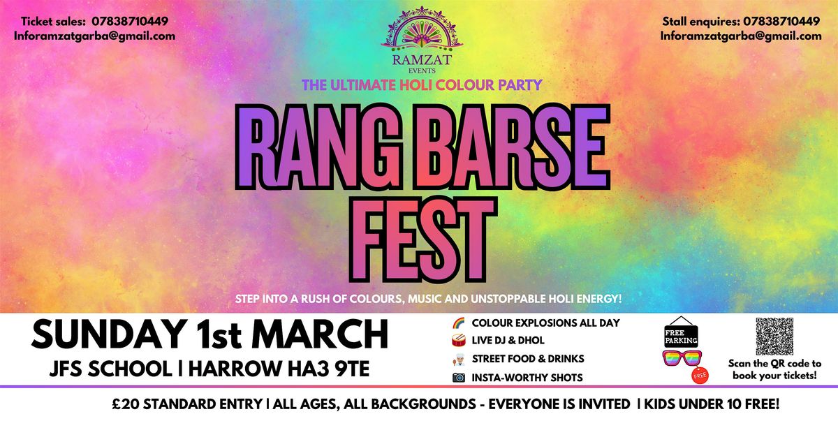 Step into a full day of colour, music and excitement at Rang Barse Fest – London’s Holi Colour Experience proudly presented by Ramzat Events. Expect waves of colour, high-energy DJ sets, dhol bringing the atmosphere to life, and plenty of vibrant moments that will leave you smiling all day.