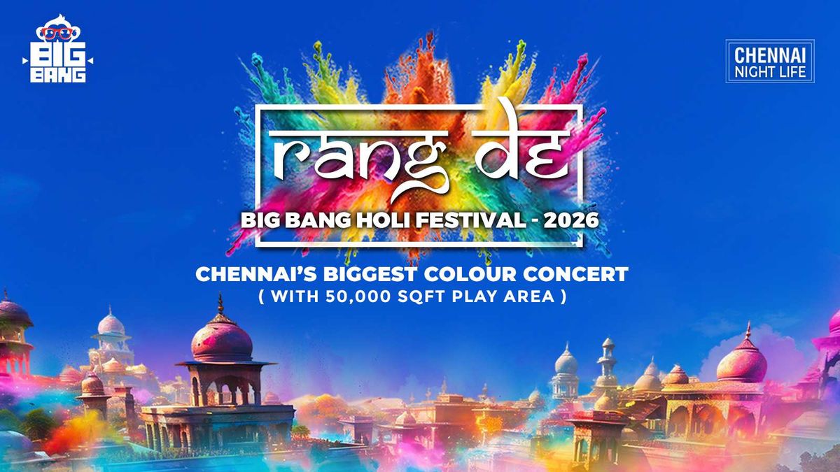Rang De - Big Bang Holi Festival, is a musical and colorful Holi celebration with the supremo of party scenes in India. This festival promises to be an all-day entertainment extravaganza, filled with celebrity appearances and interactions, diverse food stalls featuring a range of cuisines, and various activities with vibrant hues and foamy fun. Vibe in the true spirit of this joyous festival and create memories to last a lifetime. Don't miss out on the chance to experience this musical and colorful celebration.HIGHLIGHTS:- BEST DJ'S (INTERNATIONAL ARTIST)- BEST EMCEE- INFLUENCER WALK-IN- NASHIK DHOL- HOLI COLOURS- RAIN DANCE- FOAM DANCE- PHOTOBOOTH- 360 DEGREE CAMERA- WATER BALLOONS- GUNS & PICHKARI- CONFETTI BLAST- FACE PAINTING- COLOURFUL SMOKE BLAST- COLOURFUL CURTAIN DECORATION- GAMES AND OTHER ACTIVITIES- FOOD COUNTER- THANDAISAFETY FACILITIES:- BEST BOUNCERS- POLICE- AMBULANCE- FIRST AID- FIRE EXTINGUISHERS- VOLUNTEERS