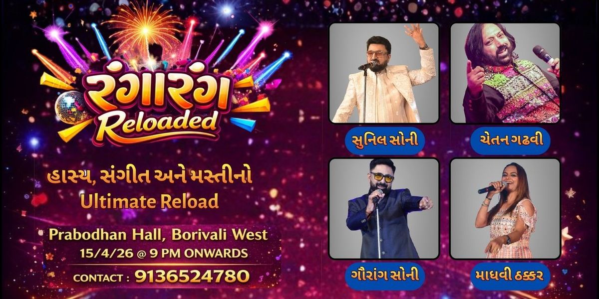 Get ready for an unforgettable evening of entertainment with રંગારંગ Reloaded — a vibrant showcase of Gujarati culture, music, and laughter. Featuring renowned artists delivering electrifying folk performances and rib-tickling comedy, this event promises non-stop entertainment for all age groups.