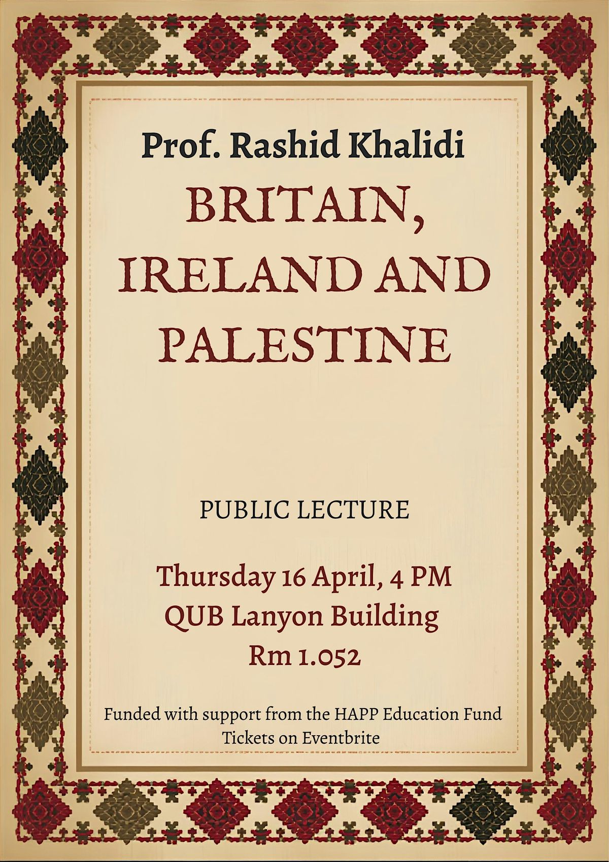 Prof Khalidi, Edward Said Professor of Modern Arab Studies at Columbia University, will lecture on the topic of his forthcoming book