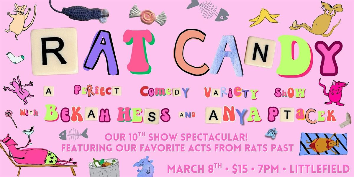 Rat Candy is a perfect comedy variety show performed by NYC’s most beloved vermin. Hosted and produced by Anya Ptacek and Bekah Hess!About this Event